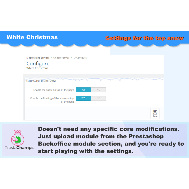 Le module ajoute un effet statique de neige en haut de la page (en plus il utilise la même option pour le floating header).